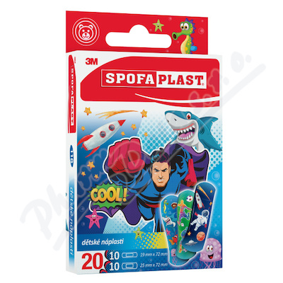 Spofaplast® Dětské náplasti jsou zábavné a tenké náplasti určené na ošetření řezných ran, odřenin a škrábanců dětí. Tyto náplasti vyhovují povrchu pokožky. Jedno balení obsahuje 20 náplastí s různými designy: 10ks - 19x72 mm, 10ks - 25x72 mm.Použití