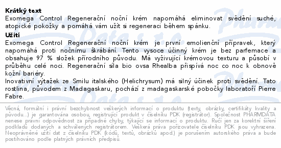 Exomega Control Regenerační noční krém napomáhá eliminovat svědění suché, atopické pokožky a pomáhá vám užít si regeneraci během spánku.Použití