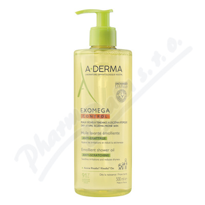 A-DERMA Exomega CONTROL Zvláčňující sprchový olej, který je vhodný k použití již od narození, čistí, vyživuje a zklidňuje suchou pokožku se sklonem k atopickému ekzému.Použití