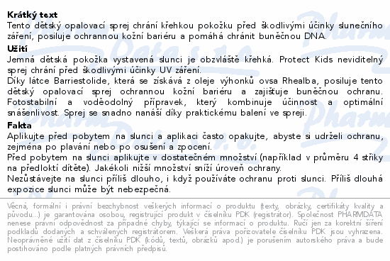 Úvod / Kosmetika, Hygiena, Domácnost / Tělová kosmetika, deodoranty / Mléka, oleje, pěny, spreje / na opalování pro děti