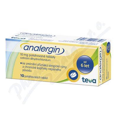 Léčivou látkou přípravku Analergin je cetirizin-dihydrochlorid.Analergin je přípravek proti alergiím. Přípravek se používá ke zmírnění nosních a očních příznaků sezónní a celoroční alergické rýmy; ke zmírnění příznaků chronické kopřivky nejasného původu. Čtěte pozorně příbalový leták.Použití
