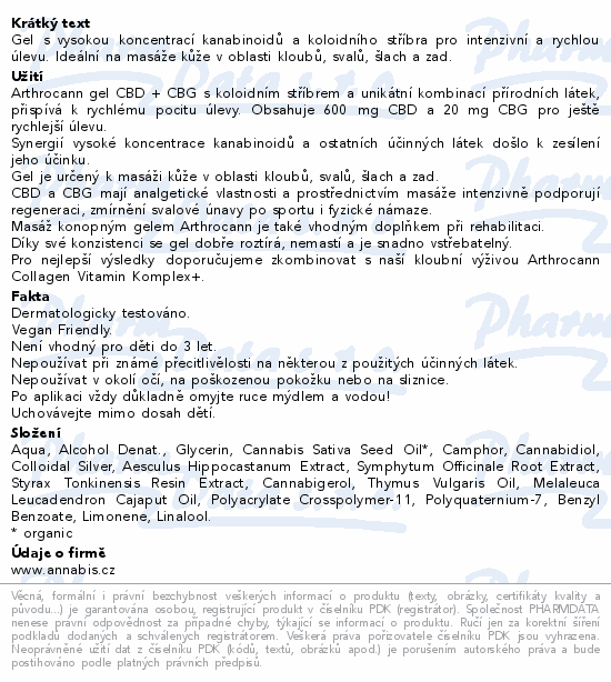 Annabis Arthrocann CBD+CBG masážní gel 75ml