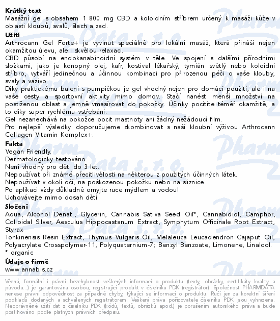 Annabis Arthrocann Forte+ CBD 1800mg mas.gel 90ml