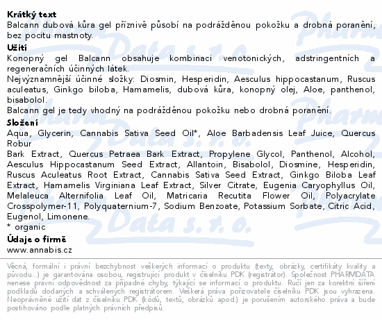 Balcann dubová kůra gel příznivě působí na podrážděnou pokožku a drobná poranění, bez pocitu mastnoty.Použití