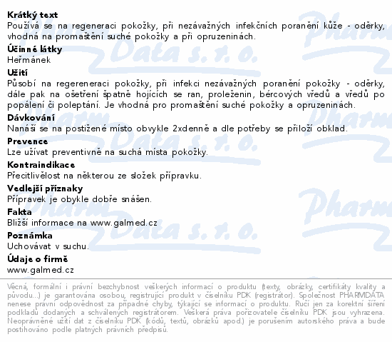Používá se na regeneraci pokožky, při nezávažných infekčních poranění kůže - oděrky, vhodná na promaštění suché pokožky a při opruzeninách.Použití
