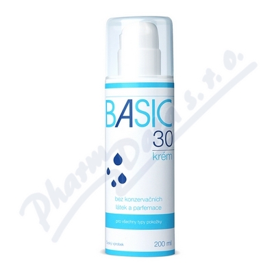 BASIC30 krém je základní krém, který zlepšuje stav pokožky tím, že jí dodává vodu a tuky. Pokožku mírně promašťuje, posiluje její přirozené ochranné mechanismy, chrání před vnějším podrážděním. Je bez parfemace, hypoalergenní a neobsahuje parabeny.Použití