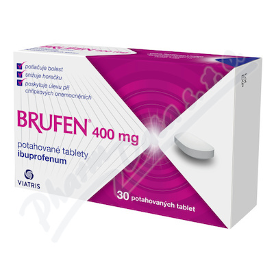 Brufen 400mg je nesteroidní antirevmatikum s výrazným účinkem snižujícím horečku, tlumícím bolest i u bolestivých stavů nerevmatického původu a s účinkem protizánětlivým. Brufen 400mg není vhodný pro děti do 12ti let. Čtěte pozorně příbalový leták.Použití