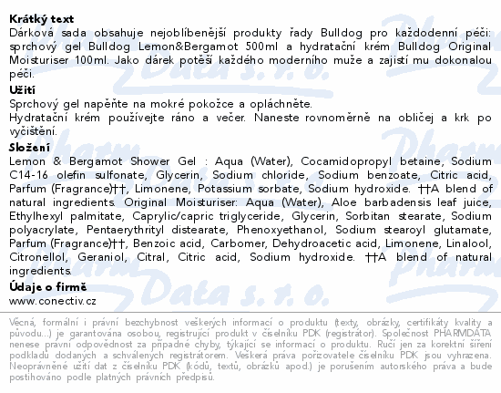 Dárková sada obsahuje nejoblíbenější produkty řady Bulldog pro každodenní péči: sprchový gel Bulldog Lemon&Bergamot 500ml a hydratační krém Bulldog Original Moisturiser 100ml. Jako dárek potěší každého moderního muže a zajistí mu dokonalou péči.Použití
