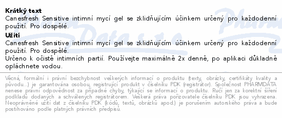Canesfresh Sensitive intimní mycí gel se zklidňujícím účinkem určený pro každodenní použití. Pro dospělé.Použití