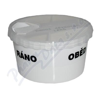 Dávkovač umožňuje rozdělení léků na celý den. Čtyři přihrádky (ráno, poledne, večer, noc) jsou velkoobjemové a hodí se i pro pacienty s větším množstvým předepsaných léčiv. Horní víko je průhledné pro snadnou kontrolu obsahu.Použití
