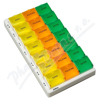 Slouží k přehlednému uspořádání a spolehlivému dávkování léků či potravinových doplňků doma i na cestách. Je označen jednoduchými popisky zobrazujícími denní dobu. Velikost dávkovače 200 x 100 x 25 mm (d x š x v).Použití