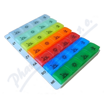 Dávkovač léků OBZOR typ 04 týdenní duhový