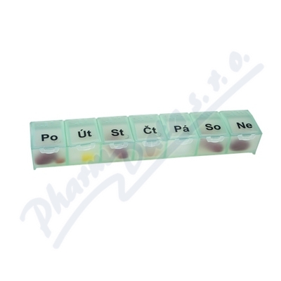 Slouží k přehlednému uspořádání a spolehlivému dávkování léků či potravinových doplňků doma i na cestách. Dostupný v několika barevných provedeních. Velikost dávkovače 140 x 30 x 20 mm (d x š x v).Použití