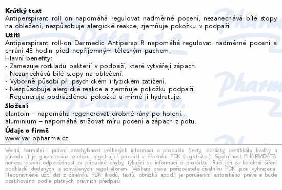 Antiperspirant roll on napomáhá regulovat nadměrné pocení, nezanechává bílé stopy na oblečení, nezpůsobuje alergické reakce, zjemňuje pokožku v podpaží.Použití