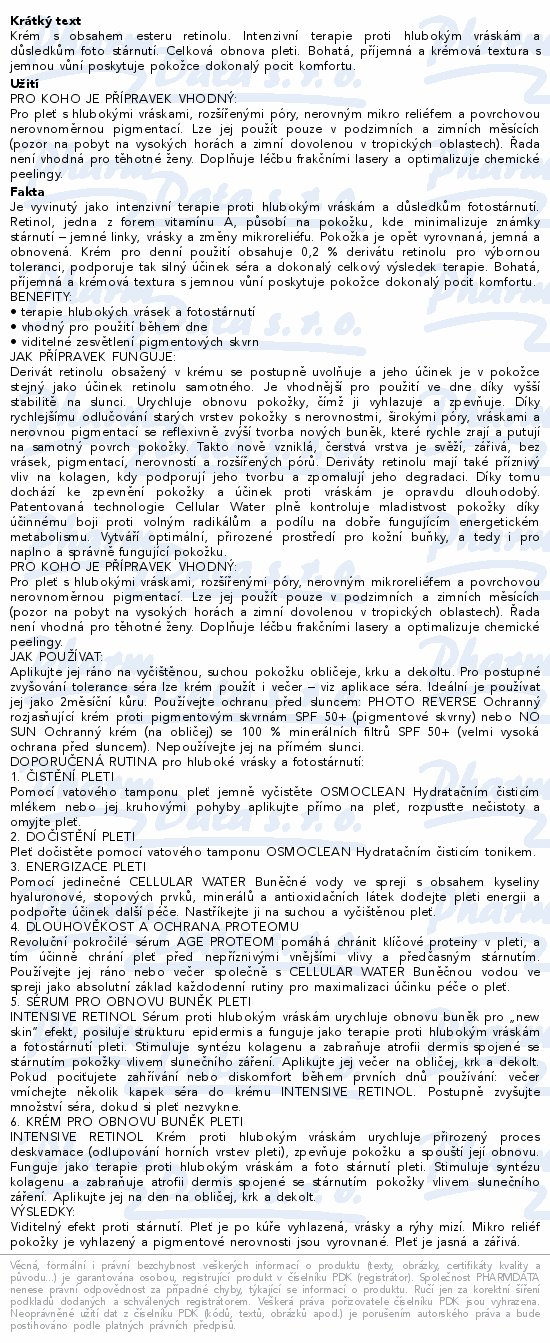 Krém s obsahem esteru retinolu. Intenzivní terapie proti hlubokým vráskám a důsledkům foto stárnutí. Celková obnova pleti. Bohatá, příjemná a krémová textura s jemnou vůní poskytuje pokožce dokonalý pocit komfortu.Použití