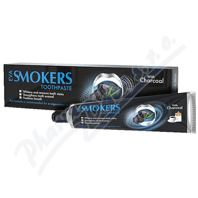EVA Bělící zubní pasta Charcoal čistí zuby a napomáhá odstranit žluté zbarvení zubů. Ideální pro bezpečné domácí čištění zubů, vhodná nejen pro kuřáky. Příjemná mentolová chuť osvěžuje dech, napomáhá odstranit i zubní plak.Použití