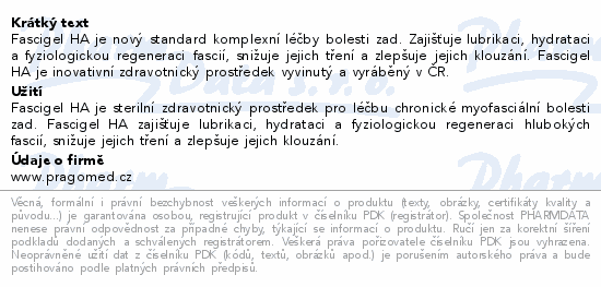 Fascigel HA je nový standard komplexní léčby bolesti zad. Zajišťuje lubrikaci, hydrataci a fyziologickou regeneraci fascií, snižuje jejich tření a zlepšuje jejich klouzání. Fascigel HA je inovativní zdravotnický prostředek vyvinutý a vyráběný v ČR.Použití