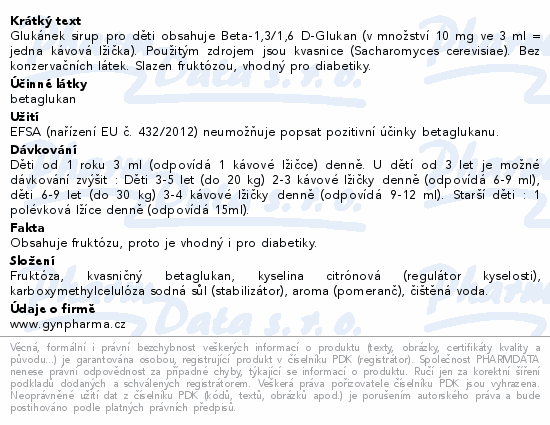 Glukánek sirup pro děti obsahuje Beta-1, 3Použití