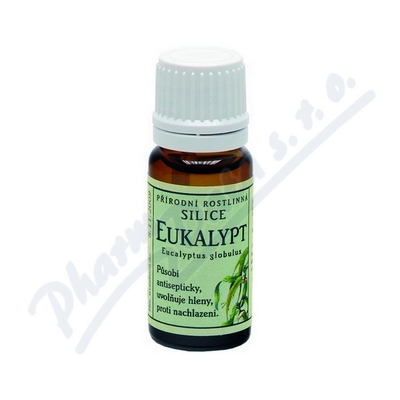 Eucalyptus globulus - přírodní rostlinná silice určená pro aromaterapii. Působí antisepticky, uvolňuje hleny, proti nachlazení.Použití