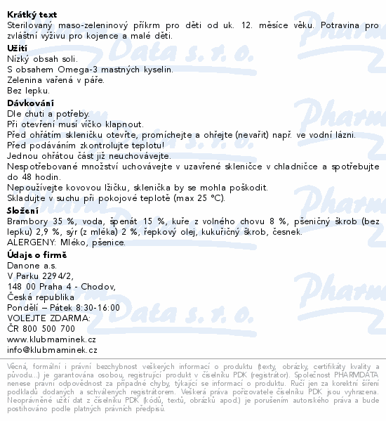 Sterilovaný maso-zeleninový příkrm pro děti od uk. 12. měsíce věku. Potravina pro zvláštní výživu pro kojence a malé děti.Použití