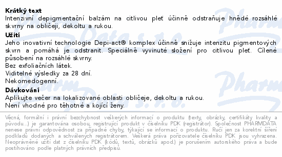 Intenzivní depigmentační balzám na citlivou pleť účinně odstraňuje hnědé rozsáhlé skvrny na obličeji, dekoltu a rukou.Použití