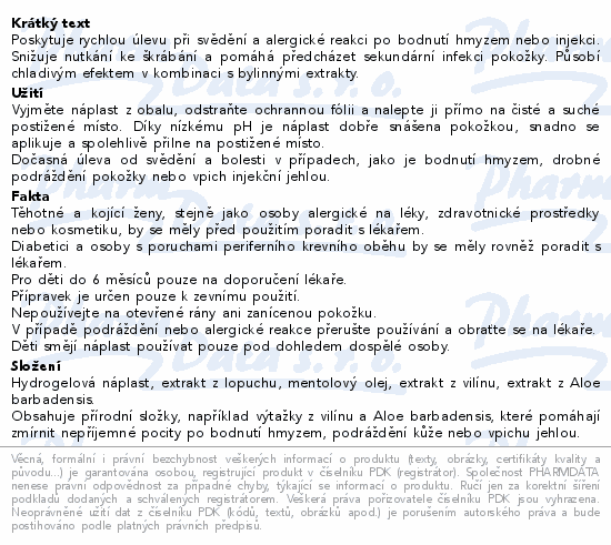 Poskytuje rychlou úlevu při svědění a alergické reakci po bodnutí hmyzem nebo injekci. Snižuje nutkání ke škrábání a pomáhá předcházet sekundární infekci pokožky. Působí chladivým efektem v kombinaci s bylinnými extrakty.Použití