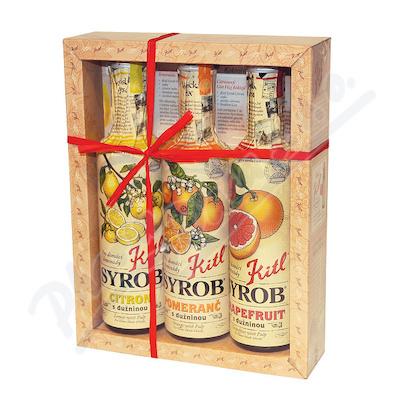 Dárkové balení citrusových Kitl Syrobů. Poctivé sirupy pro přípravu tradičních domácích limonád. Kitl Syrob Grepový, Citronový a Pomerančový s dužninou jsou vhodné především pro přípravu osvěžujících domácích koktejlů a limonád.Použití