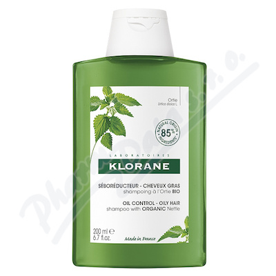 KLORANE Šampon s BIO kopřivou na mastné vlasy. Šampon díky šetrné mycí bázi eliminuje a redukuje nadbytečnou tvorbu mazu. 85% přírodní složení.Použití