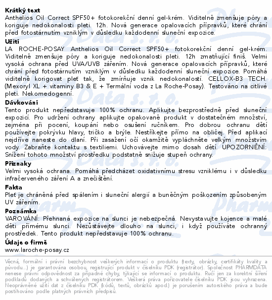 Anthelios Oil Correct SPF50+ fotokorekční denní gel-krém. Viditelně zmenšuje póry a koriguje nedokonalosti pleti. 12h. Nová generace opalovacích přípravků, které chrání před fotostárnutím vzniklým v důsledku každodenní sluneční expozice.Použití