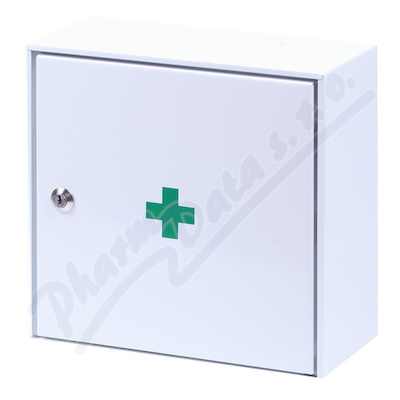 Nástěnná lékárna se zdravotnickými prostředky v kovové, uzamykatelné skříňce pro domácnosti a firmy do 10-ti osob. Obsahuje větší množství obvazového materiálu, základní vybavení pro poskytnutí první pomoci do příjezdu lékaře.Použití