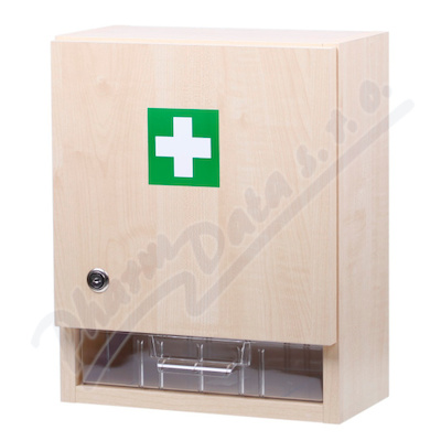 Nástěnná lékárna se zdravotnickými prostředky ve skříňce pro domácnosti a firmy do 10 osob. Obsahuje větší množství obvazového materiálu, základní vybavení pro poskytnutí první pomoci do příjezdu lékaře.Použití