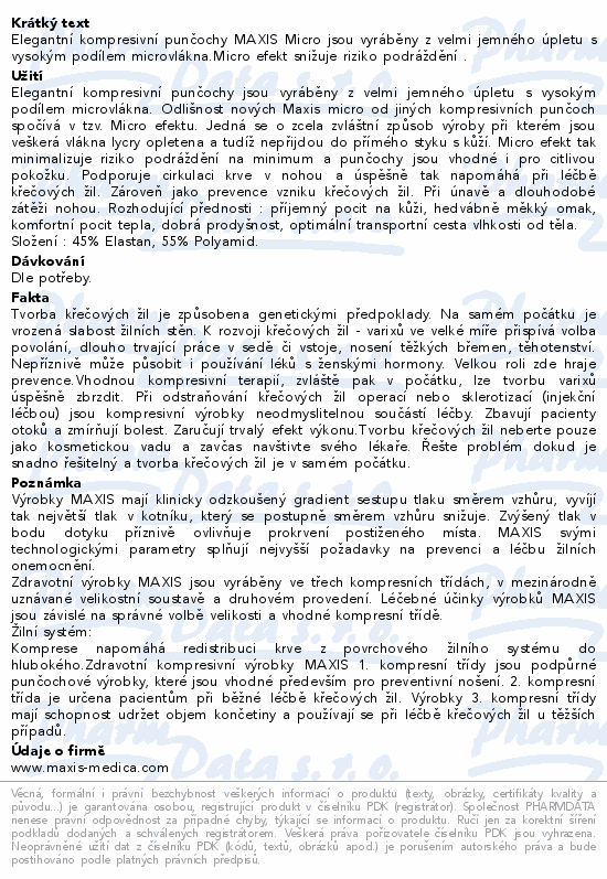 Elegantní kompresivní punčochy MAXIS Micro jsou vyráběny z velmi jemného úpletu s vysokým podílem microvlákna.Micro efekt snižuje riziko podráždění .Použití