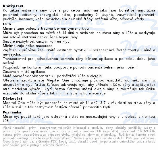 Kontaktní vrstva na rány určená pro celou řadu ran jako jsou bolestivé rány, tržná poranění, odřeniny, chirurgické incize, popáleniny 2. stupně, traumatická poranění, puchýře, lacerace, kožní povrchové a hluboké štěpy, ozářená kůže, bércové vředy.Použití
