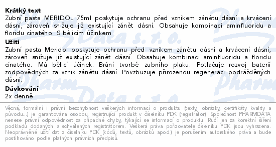 Zubní pasta MERIDOL 75ml poskytuje ochranu před vznikem zánětu dásní a krvácení dásní, zároveň snižuje již existující zánět dásní. Obsahuje kombinaci aminfluoridu a floridu cínatého. S bělicím účinkemPoužití