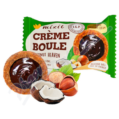 Créme boule - Coconut heaven - Datlový koláček s kokosem plněný lískooříškovým krémem s fondánem - harmonie datlí a jemně nastrouhaného kokosu bez palmového oleje a bez zbytečných umělých přísad a chemie.Použití