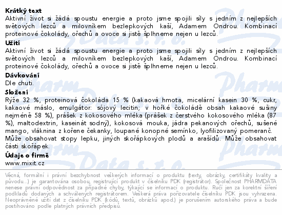 Aktivní život si žádá spoustu energie a proto jsme spojili síly s jedním z nejlepších světových lezců a milovníkem bezlepkových kaší, Adamem Ondrou. Kombinací proteinové čokolády, ořechů a ovoce si jistě šplhneme nejen u lezců.Použití