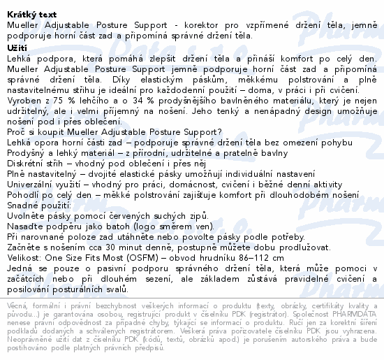 Mueller Adjustable Posture Support - korektor pro vzpřímené držení těla, jemně podporuje horní část zad a připomíná správné držení těla.Použití