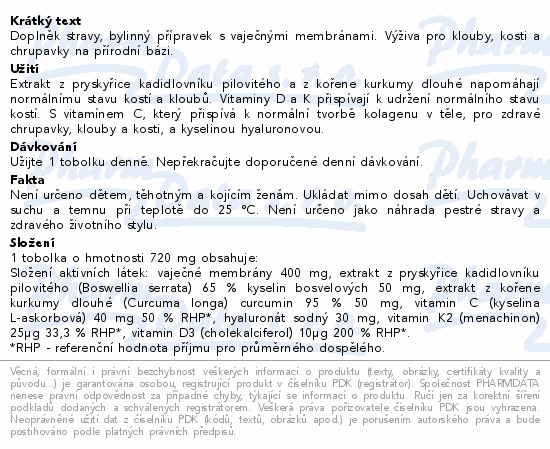 Doplněk stravy, bylinný přípravek s vaječnými membránami. Výživa pro klouby, kosti a chrupavky na přírodní bázi.Použití