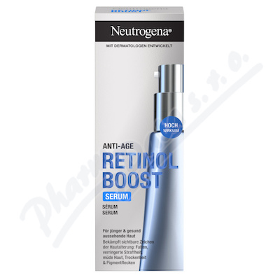 Neutrogena Retinol Boost sérum proti stárnutí pleti s čistým retinolem a s kyselinou hyaluronovou zjemňuje vrásky kolem očí, na čele a tvářích.Použití