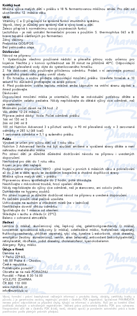 Mléčná výživa malých dětí v prášku s 18 % fermentovanou mléčnou směsí. Pro děti od ukončeného 12. měsíce věku.Použití
