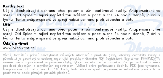 Užij si dlouhotrvající ochranu před potem a vůni parfémové kvality. Antiperspirant ve spreji Old Spice ti zajistí nepřetržitou svěžest a pocit sucha 24 hodin denně, 7 dní v týdnu. Tento antiperspirant ve spreji nabízí ochranu proti zápachu a potu.Použití