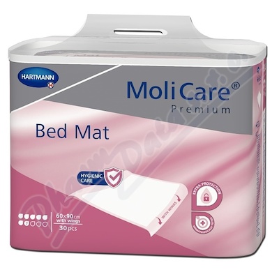 Jednorázové podložky MoliCare Bed Mat jsou tvořeny absorpčním jádrem z několika vrstev celulózy. Jsou opatřeny vnější nepropust. a protiskluzovou fólií. Celá plocha podložky je pokryta netkanou a po obvodu uzavřenou textilií s ražbou proti shrnutí jádra.Použití