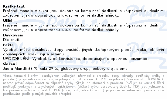 Pražené mandle v cukru jsou dokonalou kombinací sladkosti a křupavosti a ideálním způsobem, jak si dopřát trochu luxusu ve formě sladké lahůdky.Použití