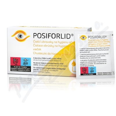 POSIFORLID čistící ubrousky na hygienu očních víček jsou zvlhčené, sterilní, jednorázové ubrousky vhodné k dennímu čištění a péči o citlivá oční víčka.Použití