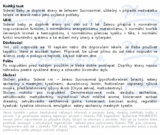 Sideral Baby je doplněk stravy se železem Sucrosomial, užitečný v případě nedostatku železa ve stravě nebo jeho zvýšené potřeby.Použití