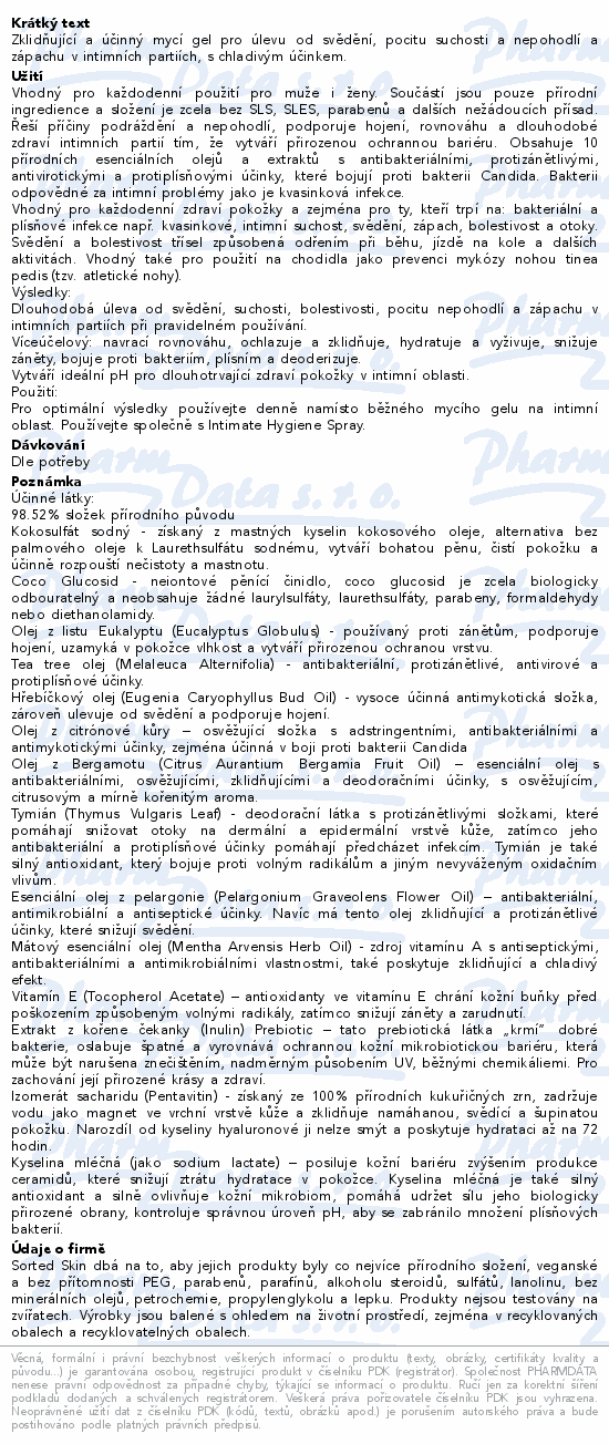 Zklidňující a účinný mycí gel pro úlevu od svědění, pocitu suchosti a nepohodlí a zápachu v intimních partiích, s chladivým účinkem.Použití