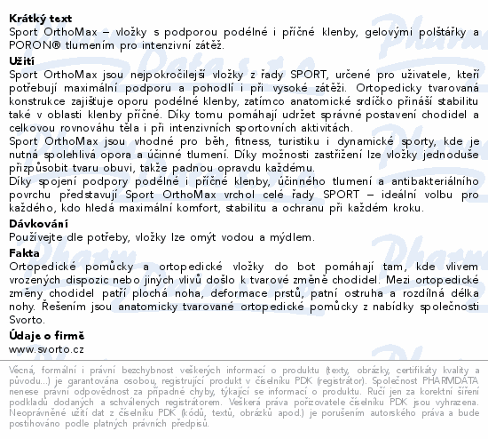 svorto 074 Vložky Sport ORTHOMAX vel.37-38