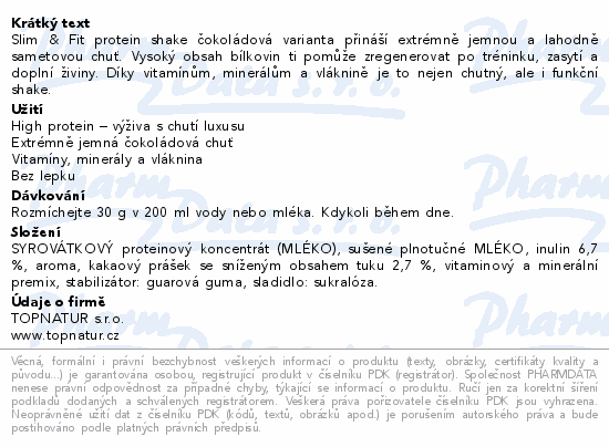Topnatur SLIM&FIT Protein Shake čokoláda 30g