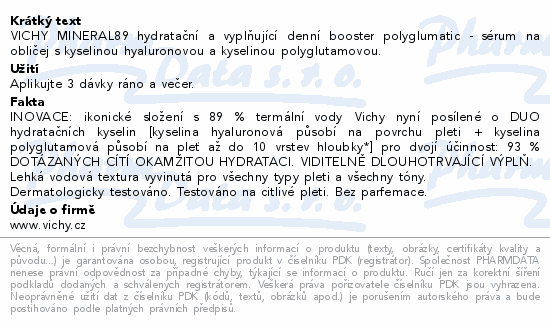 VICHY MINERAL89 hydratační a vyplňující denní booster polyglumatic - sérum na obličej s kyselinou hyaluronovou a kyselinou polyglutamovou.Použití