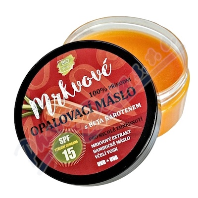 100% přírodní mrkvové opalovací máslo s beta karotenem SPF15 pro dlouhodobé a zdravé opálení, které je voděodolné.Použití